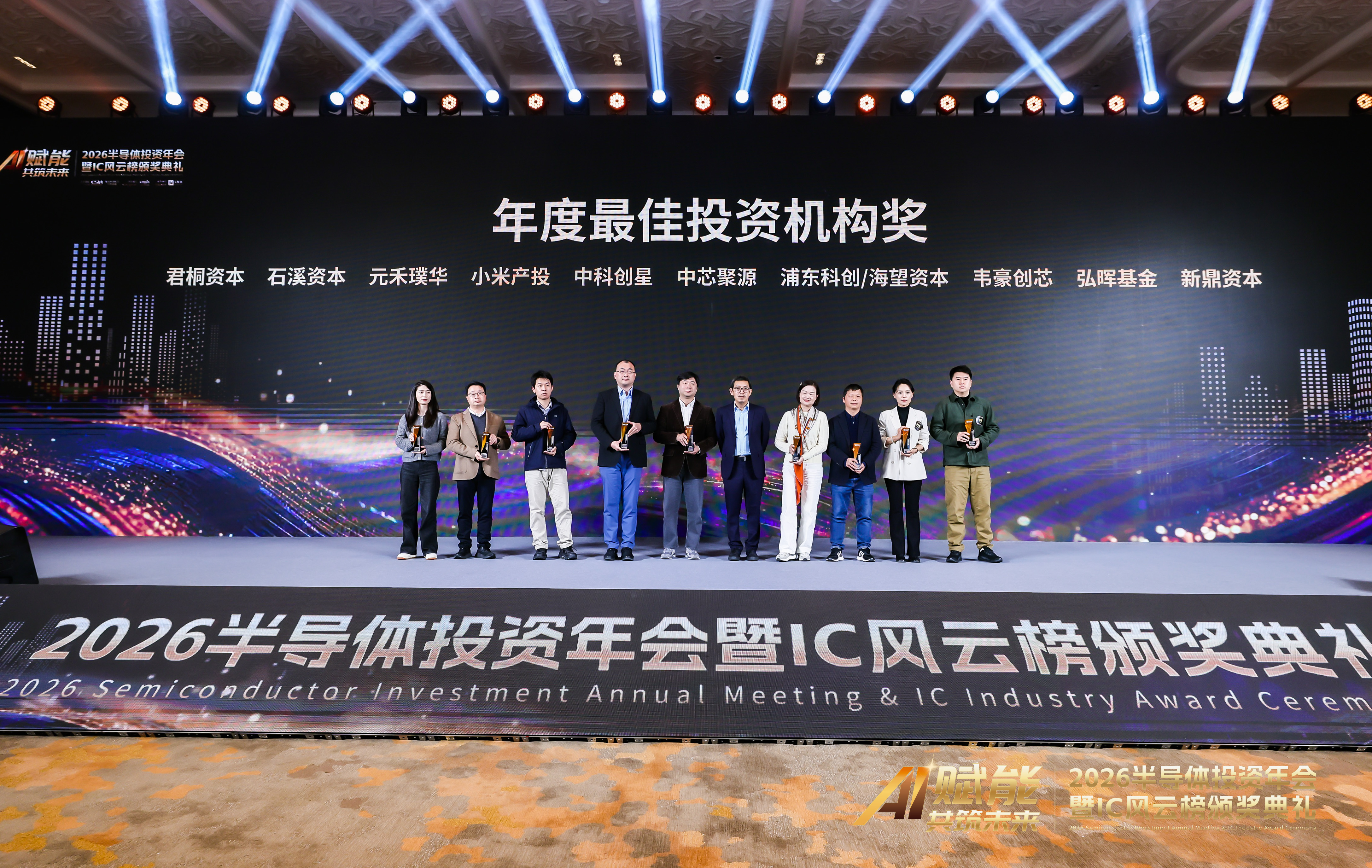“年度最佳投资机构奖”旨在表彰专注半导体并在本年度做出突出贡献、贡献了最多资本与技术、投向更多半导体新兴企业的头部机构;“年度最佳行业投资机构奖(AI类)”旨在表彰本年度在AI及具身智能领域做出突出成绩,极大助力行业发展的的优秀投资机构;“年度最佳投资人奖”旨在鼓励和表彰本年度凭借深刻行业洞察能力、过硬资本运作能力、出色投资能力在半导体投资领域取得优异成绩、为中国半导体行业发展做出突出贡献的优秀投资人。此次韦豪创芯获得多个大奖,是对我们“源于产业、赋能产业”独特模式的充分肯定,也是对通过资本之手系统性培育半导体新质生产力、助力国家科技自立自强所取得切实成就与深远行业影响力的权威认可。